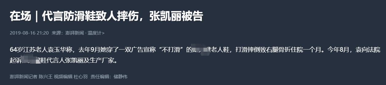 然而2019年这款老人鞋出事了,江苏一位64岁的老人穿了张凯丽代言的老人鞋,不幸打滑摔倒了,以至于右腿骨折,住院一个月。