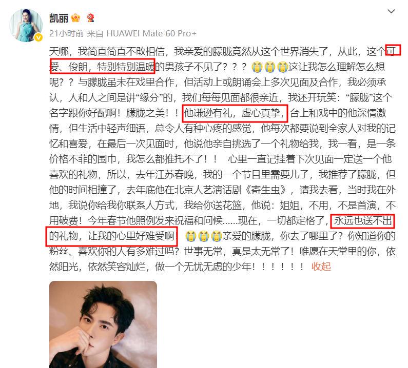 在这一众明星中,张凯丽的悼文尤其令人泪目。