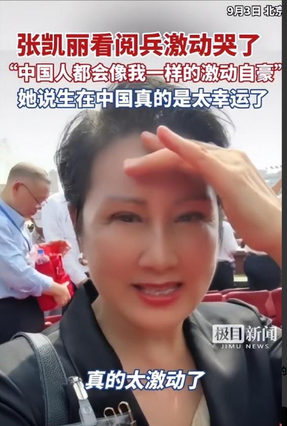 九三阅兵那天,张凯丽泪晒现场,她说相信大家和她一样激动自豪。她动情地说生在中国真的太幸运了。